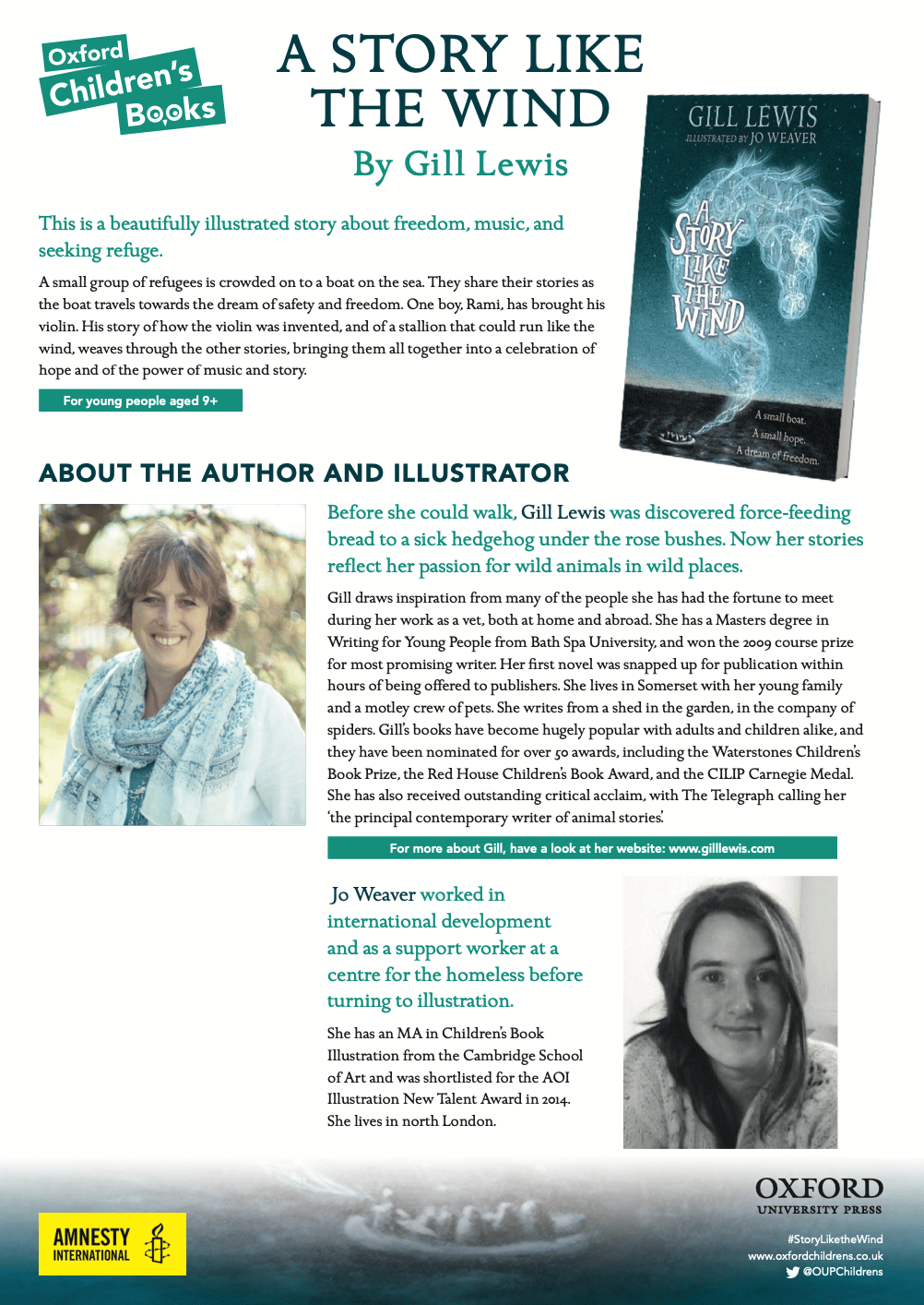 A Story Like the Wind is a lyrical and unforgettable response to the refugee crisis, which will linger on in the mind long after reading. Beautiful charcoal illustrations from Jo Weaver give this book a very special feel.