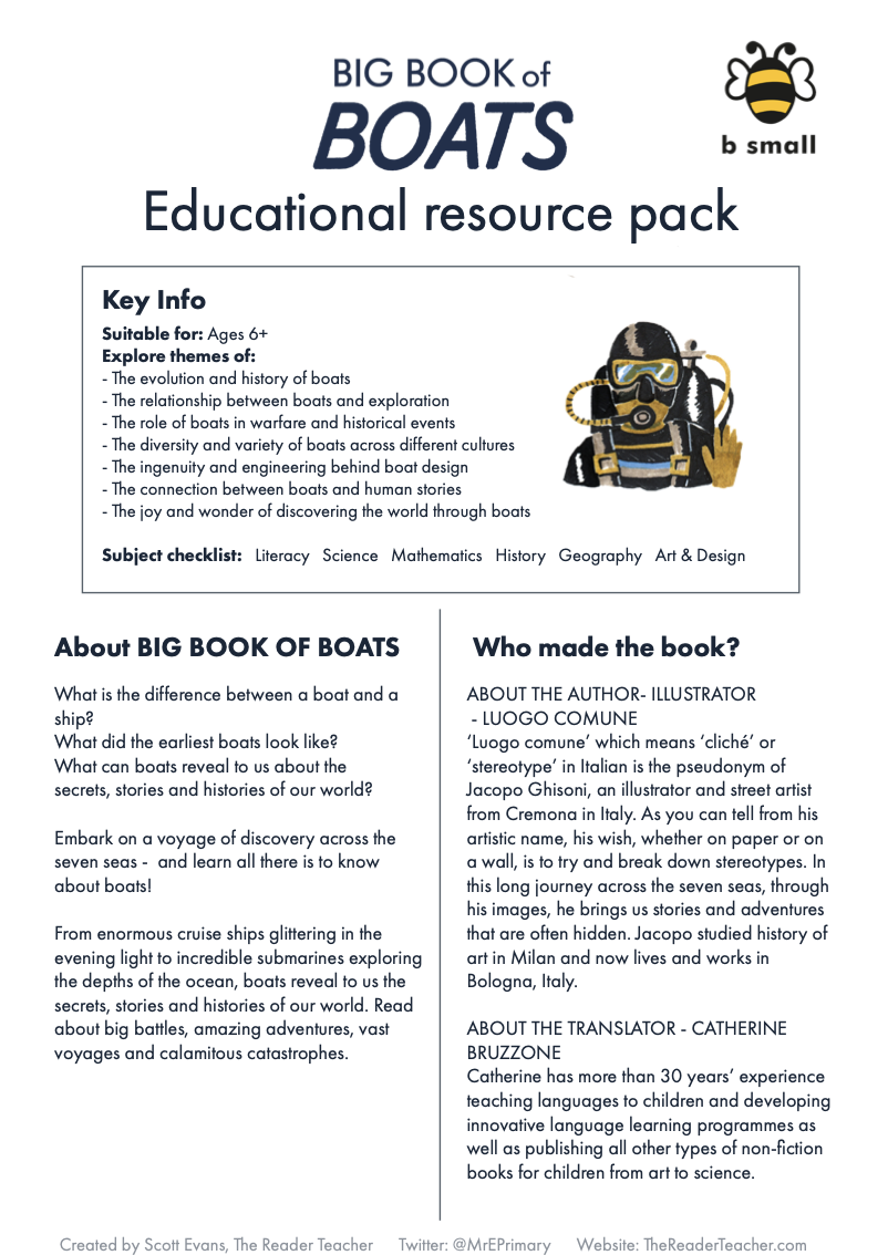Embark on a voyage of discovery across the seven seas! From enormous cruise ships glittering in the evening light to incredible submarines exploring the depths of the ocean, boats reveal to us the secrets, stories and histories of our world. Read about big battles, amazing adventures, vast voyages and calamitous catastrophes. Characterful felt-tip illustrations and curious facts combine in this gift-worthy non-fiction book of boats. All aboard!