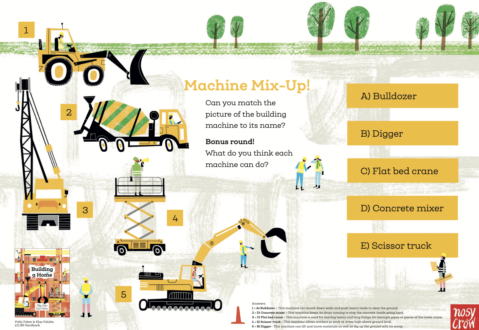 Now available in paperback, with action-packed artwork from Klas Fahlen and a gentle narrative text by Polly Faber, find out all about the people, machines, processes and tools involved in breathing new life into an old building. Packed with builders, cranes, diggers, cement mixers and a host of other exciting tools and machinery, follow a crumbling old factory on the edge of town as it goes from being an empty shell to something entirely new . . . a home.