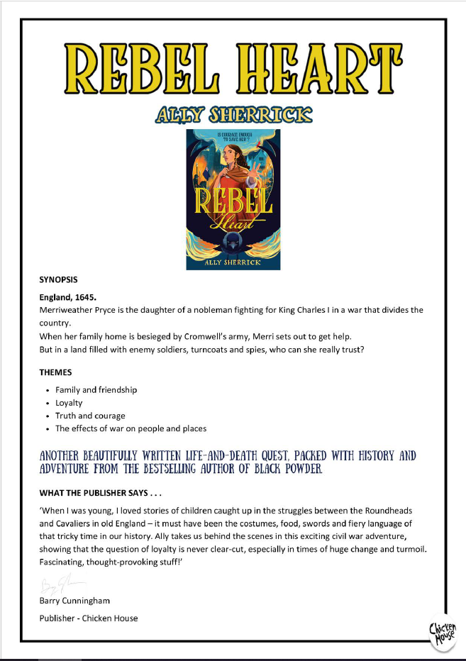 Merriweather Pryce is the daughter of a nobleman fighting for King Charles I in a war that divides the country. When her family home is besieged by Cromwell’s army, Merri sets out to get help. But in a land filled with enemy soldiers, turncoats and spies, who can she really trust?