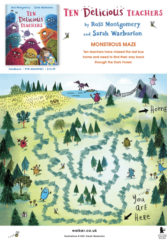 Ten very foolish teachers have missed the last bus home. But LOOK – a shortcut through the forest! They’ll be back in time for tea! Off they skip, unaware that in the woods a hungry horde of mischievous and hilariously goofy monsters is waiting… An irreverent and zany counting book that is gently thrilling with witty and whimsical illustrations.