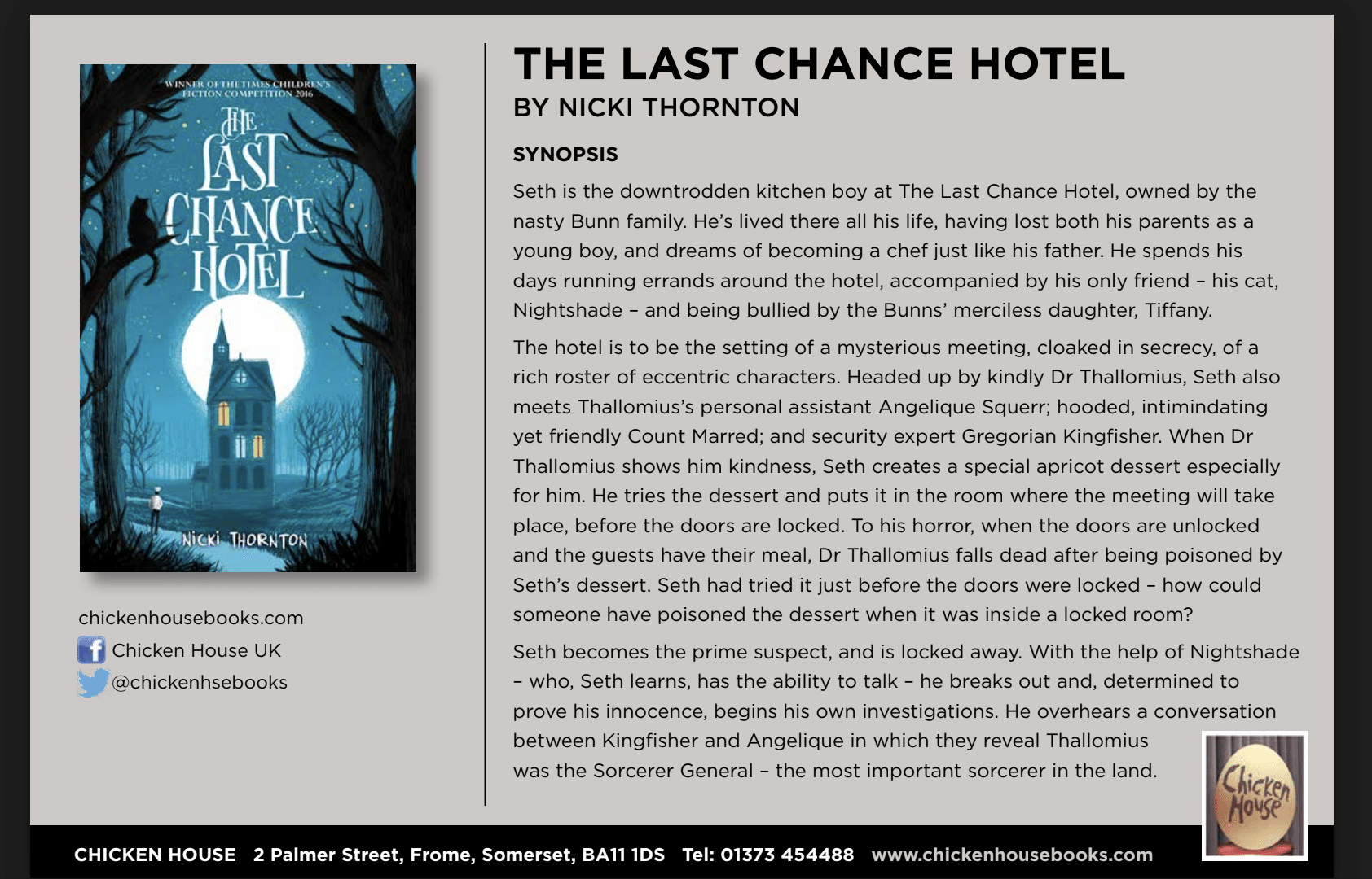 Seth is the downtrodden kitchen boy at the remote Last Chance Hotel, owned by the nasty Bunn family. His only friend is his black cat, Nightshade.