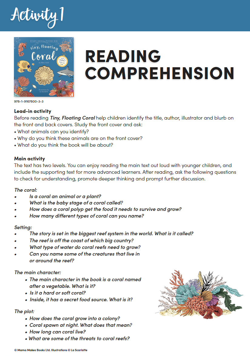Tiny, Floating Coral tells the fascinating story of coral, tiny animals that create vast underwater cities where so many other sea creatures live, feed, hide and bring up their young. It starts with a tiny coral planula floating through the ocean in a soup of plankton, looking for a place to settle, divide and grow. The story progresses in a way that builds understanding for young children so they learn about the different types of coral, how they grow and start a colony to become part of the Great Barrier Reef, and why it needs protection. The book is packed with additional facts for confident readers, touching on KS1 primary science topics: life cycles, food chains, habitats, oceans and islands, and marine life. Delicate, colourful illustrations bring the story to life.